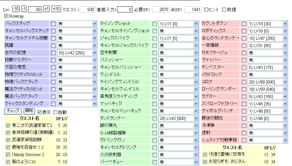 ただし、ラプターLv5→6とすると魔法攻撃は2%上がるのでラプターLv6まで取って、それ以降はロリサンを上げればSP効率は一番いい。