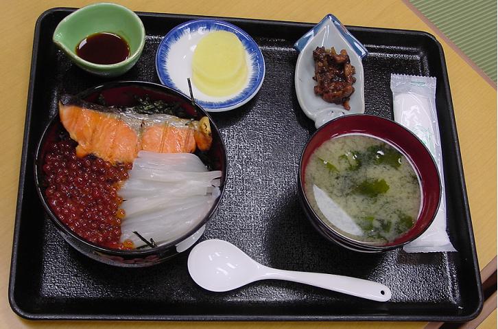 朝一番取れたての鮭、いくら、イカを使った贅沢海鮮丼