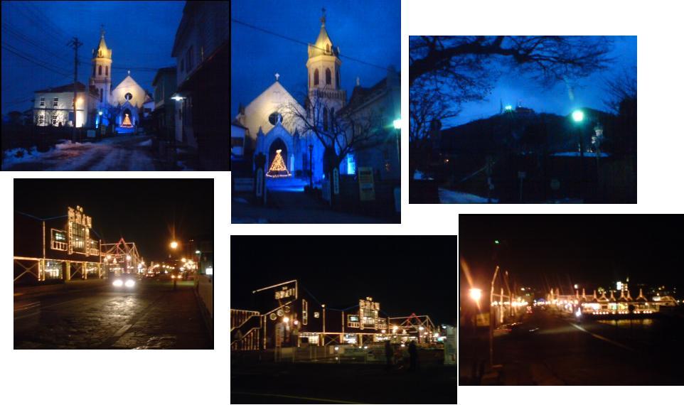 左上はカトリック教会、右上は函館山頂上のロープウェイ駅